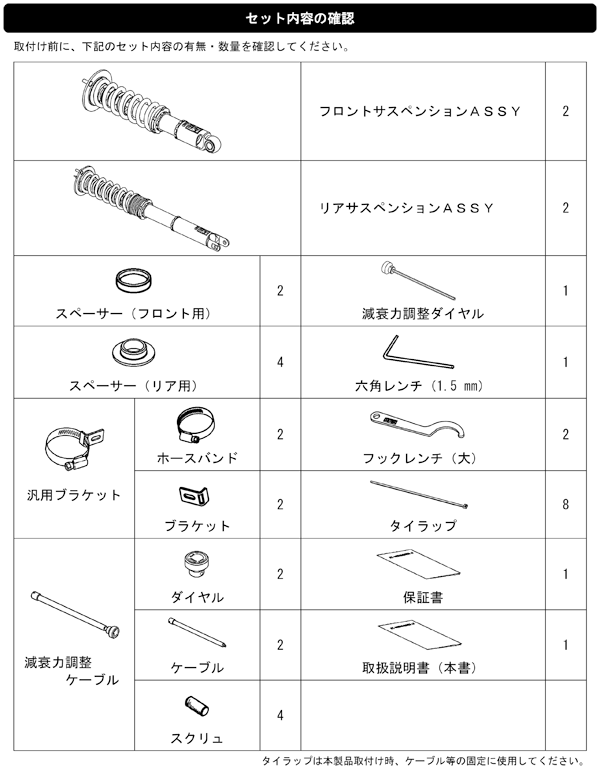 なお、出荷時車高から極端に車高を下げて使用することによるダンパーオイル漏れ等の不具合に関しても保証対象外となりますので、御注意ください。)
